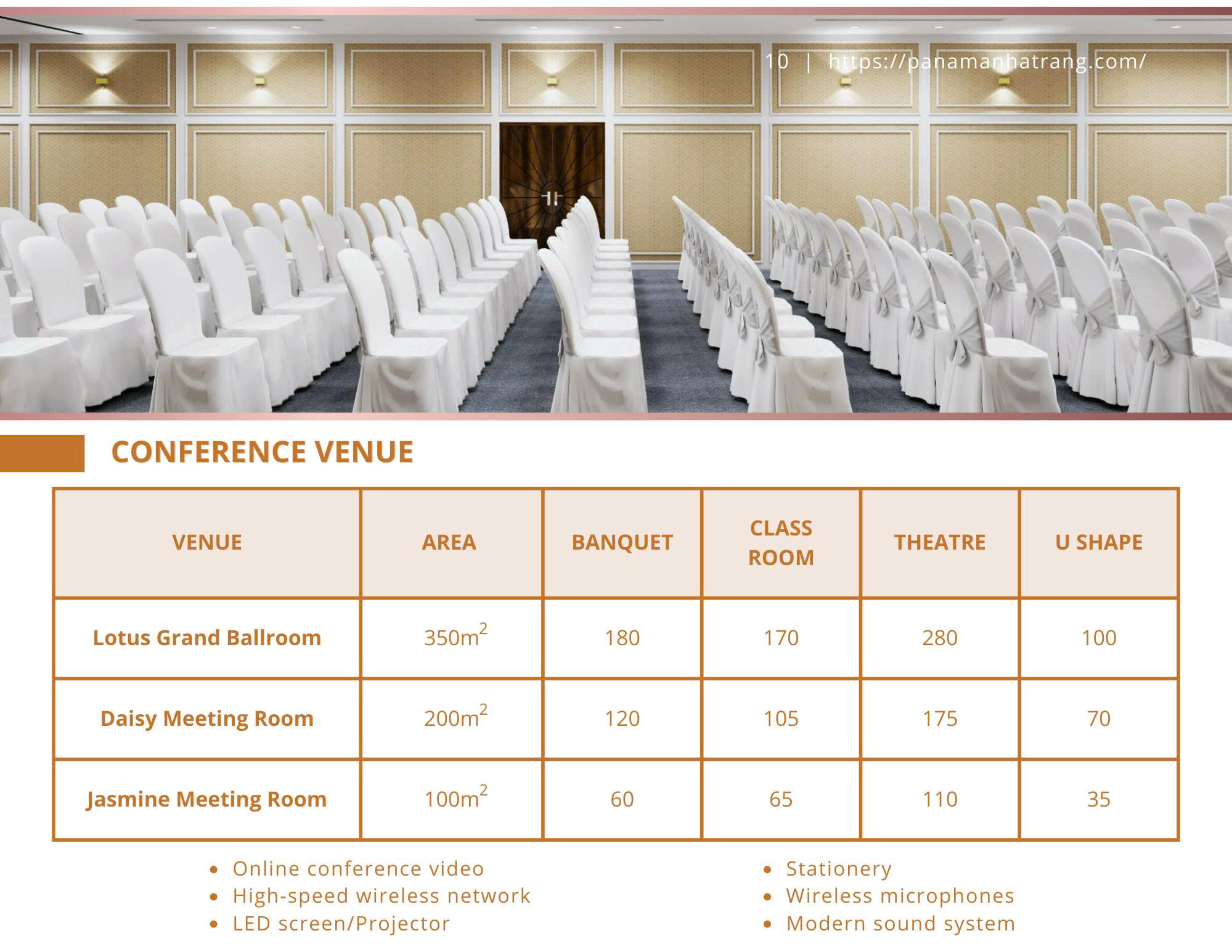 Meeting and event space up to 350 square meters with LED, projector, podium, free Wi-Fi & internet access. Guests would have the convenience of half-day or full-day seminar packages. Other add-in options are available upon guest’s requirements.